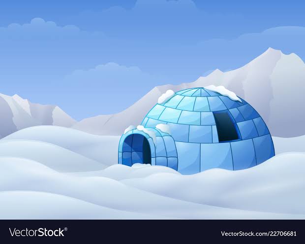 A round hole is dogged in the earth. The blocks of snow is arranged around the hole. Then a dome like structure is constructed on the hole. This shape gives good strength. A small entrance is curve out at the bottom of the structure so that chill wind cannot enter. This is Igloo, the house of Eskimos.